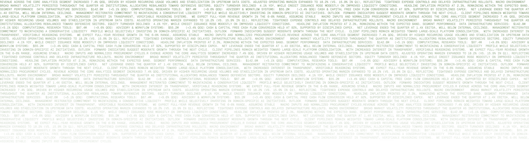 As a result, hallucination is architecturally impossible. AI generates language, not data. Every number is retrieved by code, from a source, with a citation.